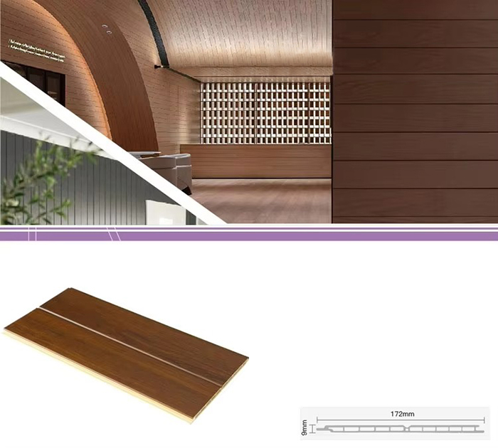 I pannelli per interni WPC, o pannelli per interni compositi in legno e plastica, sono un nuovo tipo di materiale da costruzione ecologico realizzato con fibra di legno o polvere di legno combinata con materiali termoplastici (come polietilene, polipropilene o cloruro di polivinile). Questo materiale è realizzato attraverso un processo di stampaggio per estrusione ad alta temperatura e la superficie è solitamente decorata mediante laminazione, stampa 3D o laminazione di pellicola, mostrando una struttura naturale e una sensazione simile al legno, pur avendo la durabilità e la resistenza agli agenti atmosferici della plastica. I pannelli per interni WPC non solo hanno il bell'aspetto del legno, ma superano anche i difetti del legno come la facile deformazione, l'assorbimento di umidità e il decadimento, rendendoli un materiale ideale per la decorazione di interni