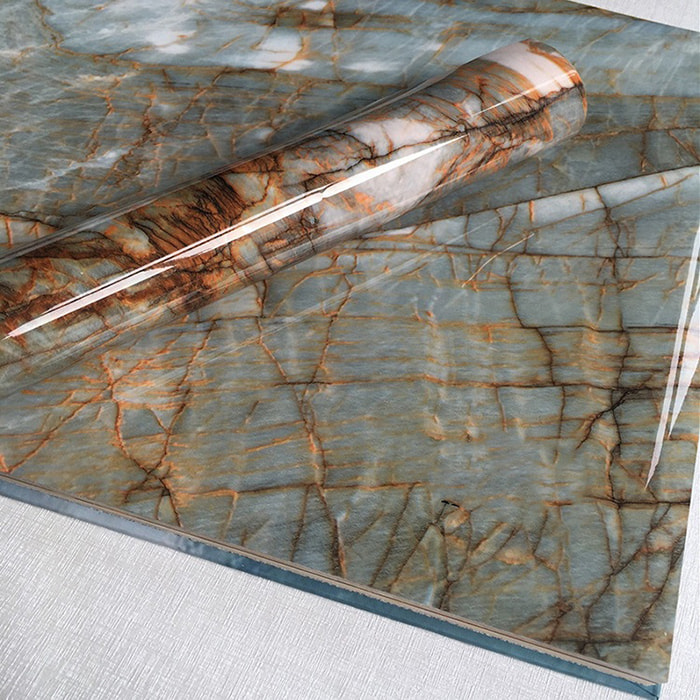 Pellicola per pavimenti: Lo strato antiusura è resistente ai graffi (≥5000 giri), adatto per ambienti ad alta umidità come cucine e bagni.