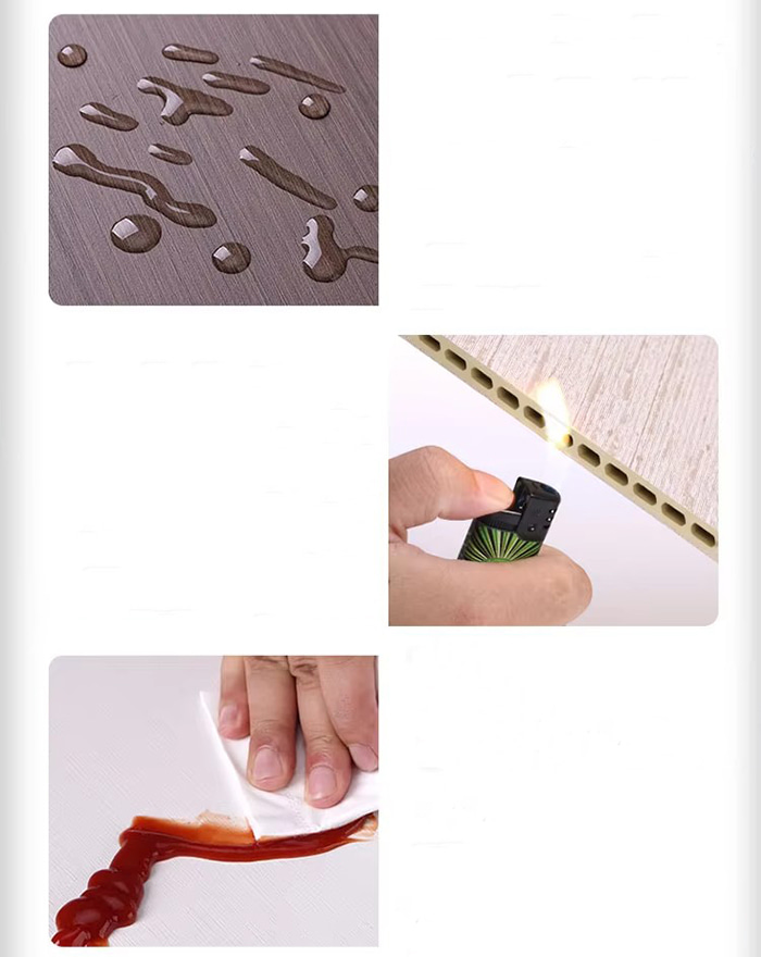 Facile da installare: è leggero e può essere segato, piallato, inchiodato e forato. Esistono vari metodi di installazione, risparmiando tempo e costi. Facile da pulire e mantenere: la superficie è liscia, non si macchia facilmente con lo sporco ed è facile da pulire. Basta pulirlo con un panno umido.